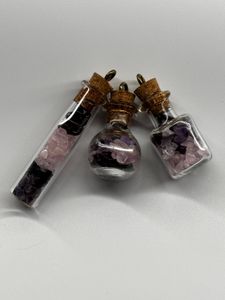 0 savesDiscover the gentle power of love and protection with this enchanting set of miniature crystal jars. Each jar holds a carefully chosen crystal—rose quartz for emotional healing, amethyst to inspire peace and spiritual growth, and garnet symbolizing devotion and strength—combined with black salt for added protection. These spell jars are designed to be your daily reminder of the love that surrounds you, perfect for carrying with you or placing in your sacred space.