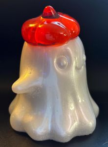 Add a charming touch to your Halloween decor with this adorable ghost wearing a bright orange hat. This cute little figure brings a playful spirit to any room, blending perfectly w...