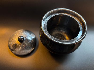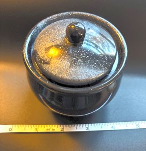 Discover the charm of this small black and silver swirled jar, accented with shimmering silver glitter that adds a touch of magic to any space. Perfect for those who appreciate got...