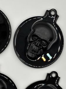 1 savesAdd a touch of dark elegance to your holiday decor with these unique skull ornaments, perfect for those who love gothic and witchy vibes. Crafted from durable resin, each piece features a sleek black-on-black design that makes them stand out whether hung on a Christmas tree, wall, or window. Lightweight and versatile, these decorations bring a spooky yet stylish charm to any space.