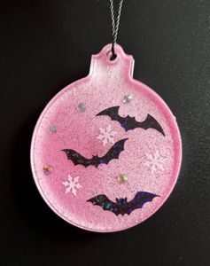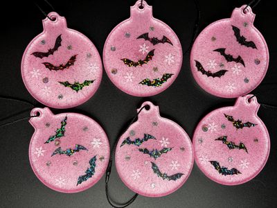 Add a touch of whimsy and gothic charm to your holiday decor with these pink sparkly bat ornaments. Crafted to delight lovers of bats, witchy aesthetics, and unique holiday accents...