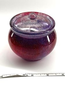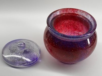Product details for Glitter Jar: Colorful Small Container - Purple and Orange.
