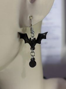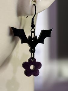 Product details for Gothic Bat Earrings: Two Pair with Reddish Flower Detail.
